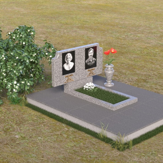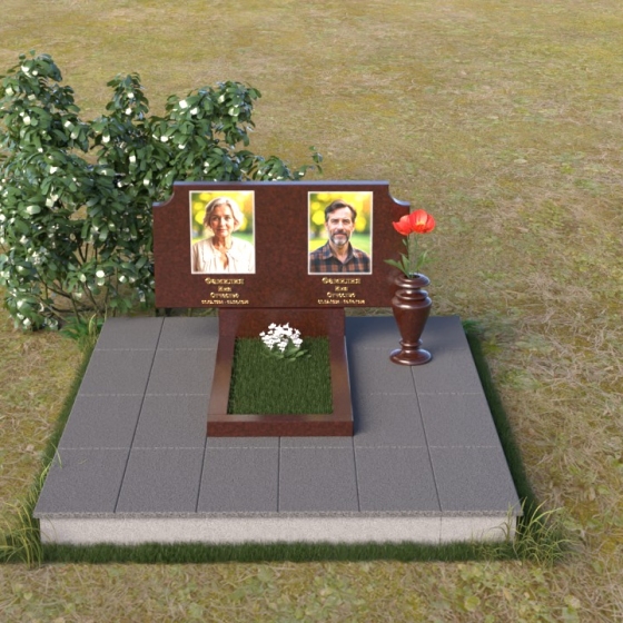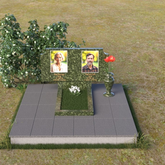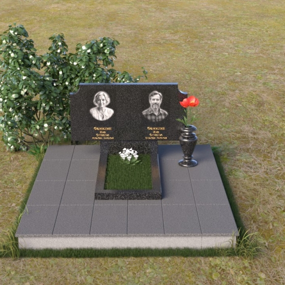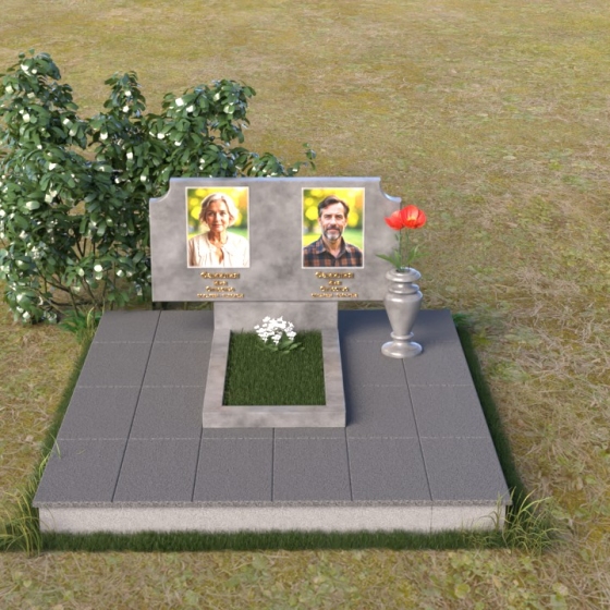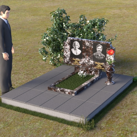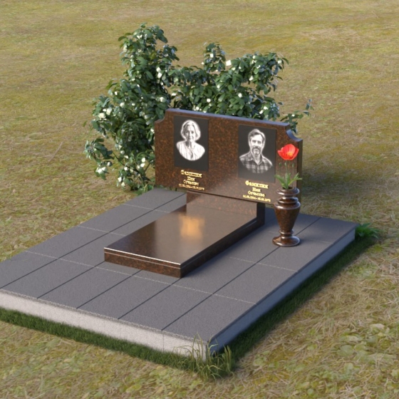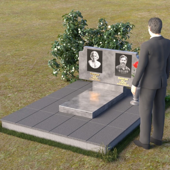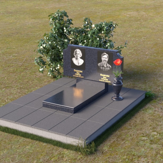 Оформление: Для этой формы стелы идеально подойдет гравировка портретов в овальной или прямоугольной рамке. Имена и даты жизни можно расположить под портретами, используя золотой или серебряный шрифт. Дополнительно можно добавить эпитафию, выражающую любовь и скорбь. Не перегружайте композицию лишними деталями – лаконичность и сдержанность подчеркнут достоинство и элегантность памятника.