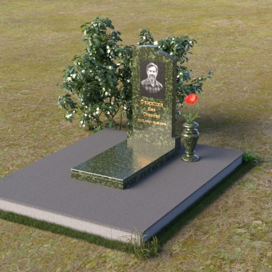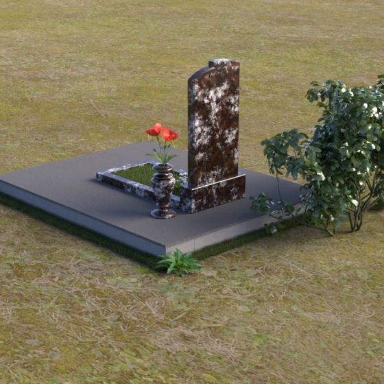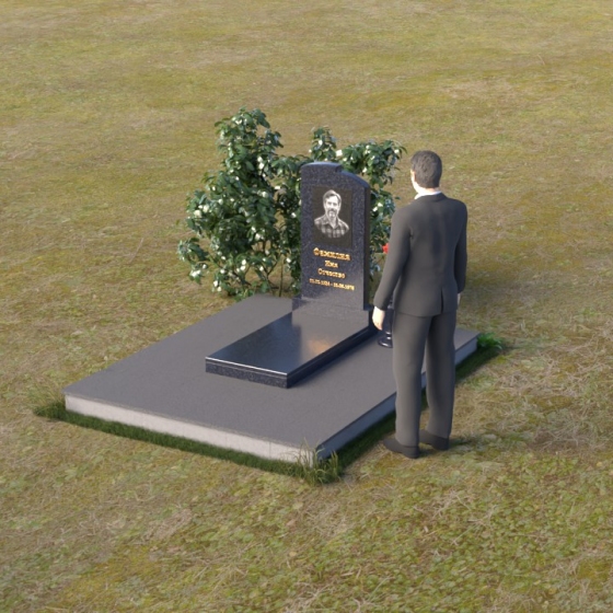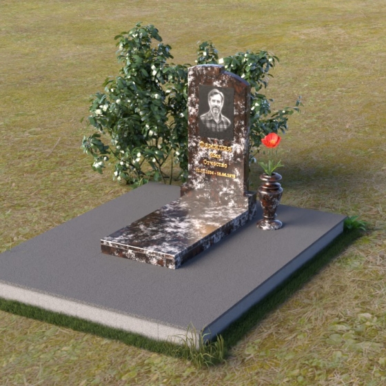 Геометрия модели продумана до мельчайших деталей. Начиная с основания, мы видим широкую плиту, обеспечивающую устойчивость всей конструкции. На ней возвышается горизонтальная плита меньшего размера, выполненная в зеркальной полировке, отражающая небо и окружающий мир, словно запечатлевая в себе мгновения жизни. Вертикальная стела, возвышающаяся над плитой, имеет сглаженные углы и плавные переходы, смягчающие строгость формы. Верхняя часть стелы, с ее деликатными сколами, придает ей уникальность и неповторимость. Рядом со стелой располагается небольшая ваза, выполненная в том же стиле, предназначенная для живых цветов, символизирующих вечную память и любовь.
