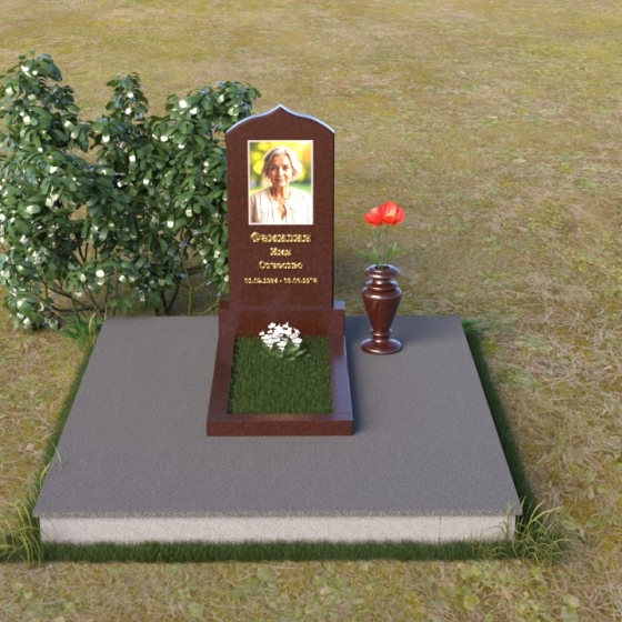 Форма этого гранитного монумента идеально подходит для размещения портрета усопшего. Благодаря своей вытянутой форме, он позволяет создать гармоничную композицию, где портрет будет занимать центральное место и привлекать к себе внимание. Золотое начертание имени и дат жизни на фоне темного полированного гранита выглядит особенно торжественно и выразительно. Вы можете выбрать любой из восьми доступных вариантов камня, чтобы подчеркнуть индивидуальность образа и создать памятник, который будет полностью соответствовать вашим представлениям о красоте и гармонии. Гранит амфиболит с его неповторимыми разводами, Балтик грин с его мягким зеленым оттенком, Блю Перл с его искрящимися вкраплениями, Габбро-диабаз с его глубоким черным цветом, Дымовский с его теплым коричневым оттенком, Лезниковский с его насыщенным красным цветом, Мансуровский с его светлым и благородным видом, или же классический мрамор Тассос – каждый из этих камней обладает своим уникальным характером и способен передать всю глубину ваших чувств. Подберите камень, который лучше всего отражает характер человека, которому посвящен этот гранитный монумент.