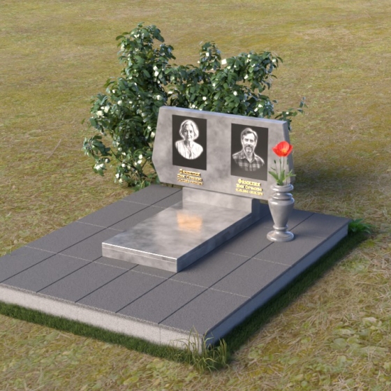 Представляем вам ритуальное изделие – памятник на могилу (Артикул: ПГ018), архитектурное решение, в котором строгость линий сочетается с глубоким символизмом. Это не просто надгробие, а осязаемое воплощение уважения и вечной памяти об ушедшем человеке. Стела, выполненная в форме сдержанного прямоугольника, слегка расширяющегося кверху, символизирует восхождение души к небесам. Грани камня тщательно обработаны, создавая игру света и тени, подчеркивающую монументальность и значимость этого места памяти. Слева и справа, верхние углы стелы имеют элегантные скосы, смягчающие строгость формы и придающие ей утонченность. На зеркальной поверхности камня выгравированы портреты усопших, их имена и даты жизни, выполненные с безупречной точностью и вниманием к деталям. Под портретами располагаются лаконичные надписи, выполненные строгим шрифтом, добавляющие памятнику сдержанности и достоинства. Дополнительная горизонтальная плита, расположенная перед стелой, создает ощущение завершенности и служит местом для возложения цветов или свечей. Этот элемент композиции выполнен в той же стилистике, что и основная стела, поддерживая общую гармонию и пропорциональность мемориального комплекса.