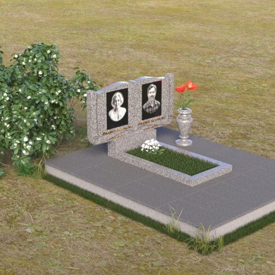 Ритуальное изделие ПГ036 представляет собой сдержанную, но исполненную достоинства композицию, созданную для сохранения памяти о близких. Два прямоугольных элемента стелы, соединенные вместе, образуют волнистый верх, напоминающий раскрытую книгу судеб. Грани обеих частей искусно обработаны, создавая мягкий, обтекаемый силуэт. Зеркальная полировка черного гранита служит идеальным фоном для гравировки портретов и надписей, словно запечатлевая светлые воспоминания в вечном камне. Слева и справа, в верхней части стелы, вырезаны лаконичные кресты, символизирующие веру и надежду. Тонкие линии врезаются в полированную поверхность, создавая игру света и тени, и добавляя глубину изображению. Горизонтальная плита, расположенная перед стелой, выполнена из того же черного гранита с зеркальной полировкой, отражая небо и окружающий пейзаж, создавая ощущение легкости и воздушности. Вместе с тем, основание памятника выполнено из серого камня, что придает всей композиции устойчивость и основательность.