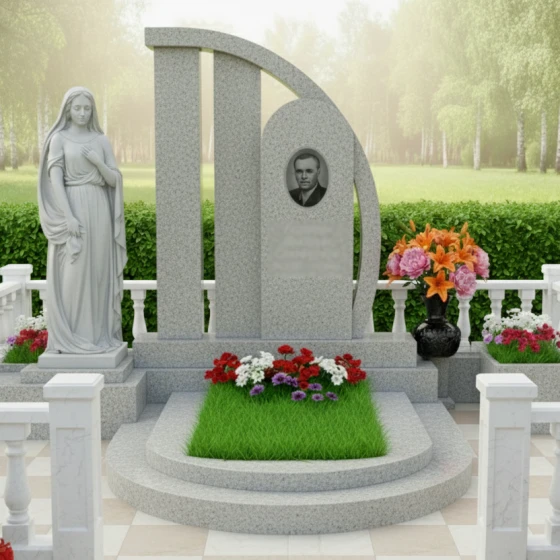 Мемориальная композиция артикула ПН 104 — это не просто надгробие, а истинный шедевр камнерезного искусства, призванный увековечить память о близком человеке с достоинством и изяществом. Созданный с безупречным вниманием к деталям, этот комплекс воплощает в себе вечную красоту и несокрушимую прочность гранита, гарантируя сохранение своего первозданного вида на протяжении многих столетий. Каждая грань, каждый изгиб здесь пронизаны глубоким смыслом, отражая не только скорбь, но и светлую память, становясь безмолвным свидетелем непреходящей любви и уважения.